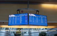 A flight status screen shows cancelled and delayed flights into an out of St. John's International Airport, Wednesday, Dec. 3, 2025. A nor'easter has descended on Atlantic Canada bringing heavy snow, rain and strong winds to the region. THE CANADIAN PRESS/Paul Daly