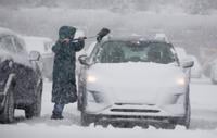 A commuter wipes off their vehicle amid heavy snowfall in St. John's, Wednesday, Dec. 3, 2025. A nor'easter has descended on Atlantic Canada bringing heavy snow, rain and strong winds to the region. THE CANADIAN PRESS/Paul Daly