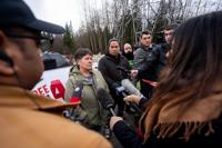 Standing outside the Skeena Substation on a muddy road, Watakhayetsxw, a hereditary chief from the Gitanyow Nation who travelled to Terrace for the announcement, said she was strongly opposed to Ksi Lisims LNG.聽