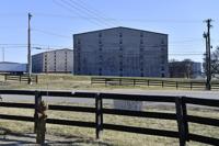 Bourbon barrel rack houses sit on a hillside at the Four Roses Distillery in Lawrenceburg, Ky., Monday, Feb. 3, 2025. (AP Photo/Timothy D. Easley)