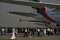 People walk at the Dubai Air Show in Dubai, United Arab Emirates, Tuesday, Nov. 18, 2025. (AP Photo/Fatima Shbair)