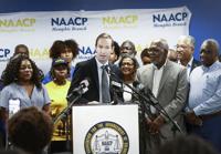 Local Boxtown resident Batsell Booker speaks during a press conference announcing NAACP plans to sue xAI over Clean Air Act on Tuesday, June 17, 2025, in Memphis. (Mark Weber/Daily Memphian via AP)