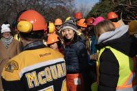 Boston Mayor Michelle Wu is outfitted with safety equipment before assisting with cutting the 13.7-metre white spruce tree from Lunenburg County that was selected as Nova Scotia's 2025 Tree for Boston, in Martins Brook, N.S. on Wednesday, Nov. 12, 2025. The province of Nova Scotia sends a tree to Boston each holiday season as a thank you to the city for sending medical personnel and supplies following the Halifax Explosion in 1917. THE CANADIAN PRESS/Darren Calabrese
