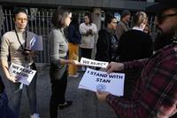 Hundreds of ABC colleagues, journalists and supporters carrying signs, including “We stand with Stan†and “We reject racism,†gathered outside the ABC’s Sydney headquarters Monday afternoon in a show of support for Grant.