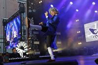 Patrick Culek "Van Airhoven" of Germany performs during the Air Guitar World Championships final in Oulu, Finland, Friday Aug. 22, 2025. (Eeva Riihela/Lehtikuva via AP)