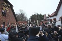 The Lüttje Klaasohm is collected on the Borkum island in Germany, Thursday, Dec. 5, 2024 before on the evening of Dec. 6, young, unmarried men dress up as so-called Klaasohms with masks, sheepskins and bird feathers. (Lars Penning/dpa via AP)
