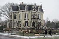 People walk by the Silas W Robbins B & B in Wethersfield, Conn., Saturday, Dec. 6, 2025, where parts of the Hallmark film "Christmas on Honeysuckle Lane" was filmed. (AP Photo/Jessica Hill)
