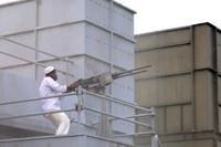 This image released by ºÃÉ«tv Geographic shows Abdul Sulaiman, portraying mess attendant Doris Miller, useing an anti-aircraft gun on the USS West Virginia in a WW2 historic reenactment scene for the series "Erased: WW2's Heroes of Color." (ºÃÉ«tv Geographic via AP)