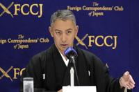 Japanese Kabuki actor Ichikawa Danjuro XIII, Hakuen speaks during a press conference at the Foreign Correspondents' Club of Japan in Tokyo, Friday, Nov. 3, 2022. The Kabuki star who recently assumed a prestigious stage name Danjuro said Friday that he wants to preserve the traditional art while adopting new approach, such as collaboration with artists from other genres in and outside Japan as he seeks to reach out to younger audience. (AP Photo/Shuji Kajiyama)