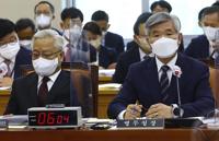Lee Ki Sik, commissioner of the Military Manpower Administration, right, speaks during a parliamentary inspection at ºÃÉ«tv Assembly in Seoul, South Korea, Friday, Oct. 7, 2022. Lee told lawmakers Friday that it’s “desirable†for BTS members to carry out their duties in accordance with the principle of fairness of the country’s military service. (Korea Pool/Yonhap via AP)