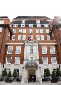 FILE - In this file photo police officers outside the London Clinic, in central London, where the Princess of Wales is in hospital for planned abdominal surgery and will remain at The London Clinic for up to two weeks, Kensington Palace said Wednesday, Jan 17, 2024. (Jonathan Brady/PA via AP)