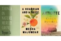 This combination of book cover images shows "Things in Nature Merely Grow" by Yiyun Li, left, "A Guardian and a Thief" by Megha Majumdar, center, and "The Antidote" by Karen Russell. (Farrar, Straus and Giroux/Knopf/Knopf via AP)