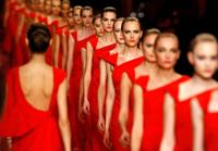 FILE - Models take to the runway after the presentation of Italian fashion designer Valentino's Haute Couture Spring-Summer 2008 collection, in Paris, Jan. 23, 2008. (AP Photo/Jacques Brinon, File)