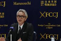 Yutaka Matsushige, a Japanese actor, listens to an attendee's question during a news conference on a popular TV drama where he stars, in Tokyo, Thursday, April 16, 2026. (AP Photo/Hiro Komae)
