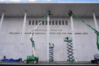 Blue tarps were hung in front of the building to obscure workers on scaffolding as they executed the transformation. Hours later it had a new name: The Donald J. Trump and The John F. Kennedy Memorial Center for the Performing Arts.