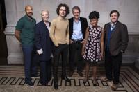 Keegan-Michael Key, from left, Olivia Colman, Timothee Chalamet, Hugh Grant, Calah Lane and director Paul King pose for portrait to promote the film "Wonka" on Wednesday, Nov. 29, 2023 in London. (Scott Garfitt/Invision/AP)