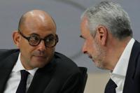 Simon Stiell, United Nations climate chief, left, speaks with André Corrêa do Lago, COP30 president, during a news conference at the COP30 U.N. Climate Summit, Monday, Nov. 10, 2025, in Belem, Brazil. (AP Photo/Fernando Llano)
