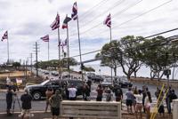 Dozens gathered on the to watch Biden's motorcade wind its way through the community. Some greeted the president enthusiastically, but others appeared to be waving their middle fingers at the motorcade. Other island residents held up signs urging Biden “to listen to the people of Lahaina” and to send more aid.