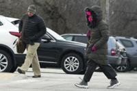 A pedestrian bundles up as she walks on the sidewalk during cold weather in Wheeling, Ill., Thursday, Dec. 12, 2024. (AP Photo/Nam Y. Huh)