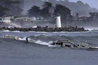 In Santa Cruz, where a municipal wharf under construction partially collapsed on Monday, most beaches were cordoned off as they were inundated with high surf and debris.