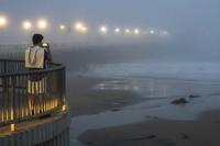 People stand at the end of the Manhattan Beach Pier and watch high surf pound the pylons on Tuesday, Dec. 24, 2024 in Manhattan Beach, Calif. (AP Photo/Richard Vogel)