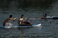 Residents cool off in a lake from an unseasonably hot day in Beijing, Sunday, June 16, 2024. China is being buffeted by two weather extremes, with heavy rain and flooding in parts of the south and a heat wave and potential drought in the north. (AP Photo/Andy Wong)