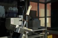 A latex dipping machine spins around after dipping a model glove mold into guayule latex, Tuesday, Feb. 6, 2024, in Wooster, Ohio. With climate change bearing down on agriculture around the world, the need for crops like guayule that can withstand extreme weather such as persistent drought is important. (AP Photo/Joshua A. Bickel)