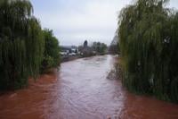 Aerial footage showed roads under muddy brown water, submerged cars and businesses along its main street flooded after the River Monnow rose to a record level and spilled over its banks.