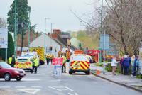 Emergency services on Cinderhill Sreet after severe flooding due to Storm Claudia, in Monmouth, South Wales, Saturday, Nov. 15, 2025. (Ben Birchall/PA via AP)