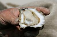 FILE - A freshly harvested Apalachicola Bay oyster is displayed in Eastpoint, Fla., on March 27, 2008. (AP Photo/Phil Coale, File)