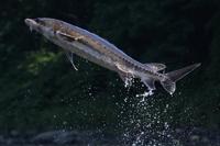 Scientists have proposed a number of reasons why sturgeon jump out of the water, including regulating their swim bladder, communicating with other sturgeon, shedding parasites and avoiding predators. Shortnose sturgeon can weigh up to 60 pounds (27 kilograms), while Atlantic sturgeon can be much larger, with some weighing as much as 800 pounds (363 kilograms).