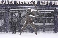 A man walks past a statue of Pittsburgh Pirates baseball Hall of Fame Willie Stargell outside PNC Park on the Northside of Pittsburgh at mid-morning Sunday, Jan. 25, 2026. (AP Photo/Gene J. Puskar)