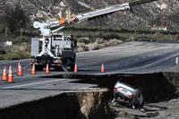 Part of California State Route 138 washes away from flooding Wednesday, Dec. 24, 2025, outside of Wrightwood, Calif. (AP Photo/Wally Skalij)