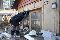 Michelle Meyers inspects her property, buried in mud after a series of storms, Thursday, Dec. 25, 2025, in Wrightwood, Calif. (AP Photo/William Liang)