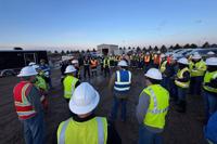 This photo provided by South Bow shows workers gathered to respond to the Keystone oil pipeline spill that occured Tuesday, April 8, 2025. near Fort Ransom, N.D. (South Bow via AP)