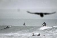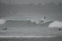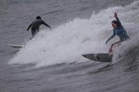 “It’s really choppy out there, not really surfable yet, but I think we can find a good break somewhere later,” Johnson said. “I can’t remember a storm like this.”