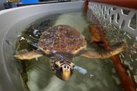 The release location is an unlikely haven: an area of methane extraction platforms symbolizing industrial intrusion in the turtles' habitat. But since fishing is prohibited in the area, it's a safe place to release turtles after they are treated at the (CESTHA). The center works to rescue and care for animals injured by trawlers and says its work has benefited more than 300 sea turtles, nearly 700 seahorses, more than 100 sharks and hundreds of thousands of cuttlefish in the past decade.