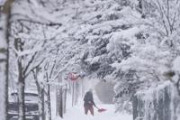 A person shovels snow in Halifax on Monday, January 29, 2024 as a snowstorm and gusting winds have caused cancellations throughout Nova Scotia. THE CANADIAN PRESS/Darren Calabrese