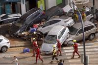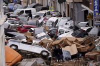 Cars were piled on one another like fallen dominoes, uprooted trees, downed power lines and household items all mired in mud that covered streets in dozens of communities in Valencia, a region south of Barcelona on the Mediterranean coast.