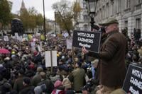 They were cheered by a tightly packed crowd estimated by police at 10,000, many dressed for a wet, chilly day in in the unofficial countryside uniform of olive-green Barbour jackets. Some held signs proclaiming “Stand with a farmer, not Starmer.”