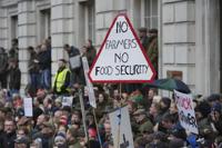 Organizers urged protesters not to bring farm machinery into central London, though a handful of tractors drove past Downing Street festooned with signs saying “the final straw” and “no farmers, no food.”