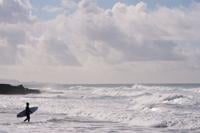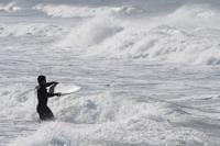 A surfer enters the water after a rainstorm at Cardiff State Beach Friday, Nov. 21, 2025, in Solana Beach, Calif. (AP Photo/Gregory Bull)