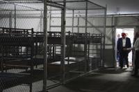 Inside, rows of bunkbeds are surrounded by chain-link fencing, where migrants could be housed for days, weeks or months. Officials say detainees will have access to medical care, 24/7 air conditioning, and a rec yard, as well as support from attorneys and members of the clergy.