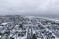 The storm that prompted the first ever blizzard warnings for some places along the Texas and Louisiana coast also covered the white-sand beaches of normally balmy Gulf Shores, Alabama, and Pensacola Beach, Florida. Snow covering South Carolina sand from Hilton Head Island to the giant Ferris wheel in Myrtle Beach created more opportunities to turn surf gear into sleds.