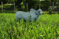 A cutout cow stands in a crop research field at the AgriZone near the COP30 U.N. Climate Summit, Tuesday, Nov. 18, 2025, in Belem, Brazil. (AP Photo/Joshua A. Bickel)