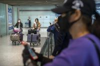 Travelers wearing face masks walk through the international arrivals area at Beijing Capital International Airport in Beijing, on March 15, 2023. Travelers entering China will no longer need to provide a negative PCR test result starting from Saturday, April 29, 2023, in another easing of China's "zero-COVID" policies. (AP Photo/Mark Schiefelbein)