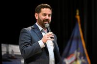 FILE - State Rep. Ryan Mackenzie speaks before Republican presidential nominee former President Donald Trump speaks at a campaign rally in Allentown, Pa., Oct. 29, 2024. (AP Photo/Matt Rourke, File)