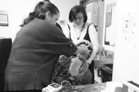 Sarah Greig, left, Director of Substance Use and Mental Health, and Lilia Moreno, community health worker, support a service user after he displayed signs of an overdose, at Moss Park consumption and treatment service in Toronto on Tuesday, Dec. 31, 2024. THE CANADIAN PRESS/Chris Young