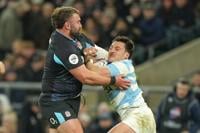Argentina's Rodrigo Isgro, right, is tackled by England's Will Stuart during the Nation's Series rugby union international between England and Argentina at Twickenham, London, Sunday, Nov. 23, 2025. (AP Photo/Alastair Grant)