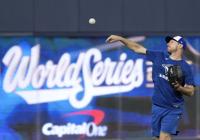 Los Angeles Dodgers pitcher Clayton Kershaw warms up during batting practice ahead of game 6 of the World Series against the Toronto Blue Jays in Toronto on Thursday, October 30, 2025. THE CANADIAN PRESS/Nathan Denette